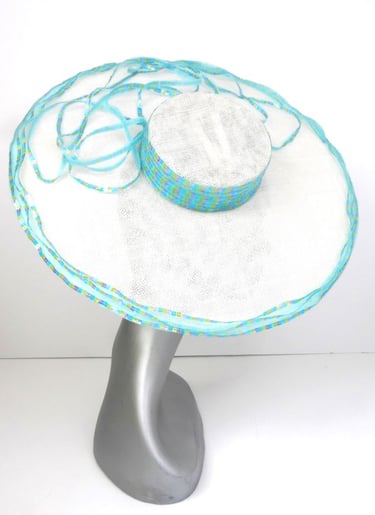 This boater hat seamlessly blends traditional millinery craftsmanship with modern aesthetic touches, resulting in a piece that is both timeless and uniquely captivating.